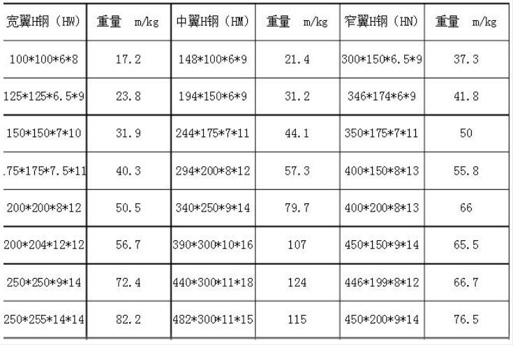 h型鋼規(guī)格表及重量表中可以看到,h型鋼規(guī)格主要就是可以分為寬翼緣h型鋼以及窄翼緣熱軋h型鋼,除了這兩種還有一種就是熱軋h型鋼柱,再就是對(duì)應(yīng)的重量,其實(shí)當(dāng)大家在選擇的時(shí)候需要注意到的地方還是比較多的,這些只是其中的一部分,在開(kāi)始不是很清楚,大家可以找一些比較正規(guī)的生產(chǎn)廠家來(lái)進(jìn)行咨詢(xún),專(zhuān)業(yè)人士會(huì)根據(jù)使用環(huán)境從而確定材料以及數(shù)量等等,這樣也是可以更加簡(jiǎn)單便利一些。