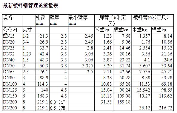 鍍鋅鋼管理論重量表中不同規(guī)格對(duì)應(yīng)的重量是多少?