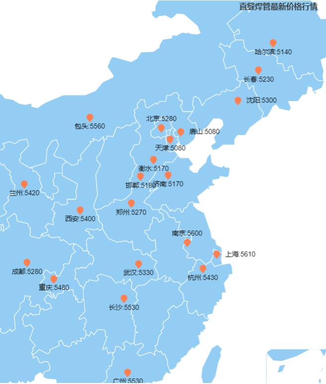 全國主要城市直縫焊管最新價(jià)格圖表 admin888 | 全國主要城市直縫焊管最新價(jià)格保持平穩(wěn),最低價(jià)格城市是天津與唐山的5080元一噸,最高價(jià)格城市是上海5610元一噸,以下就是全國主要城市直縫焊管最新價(jià)格圖表。