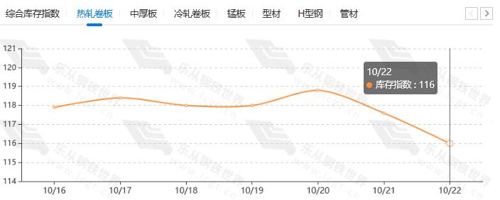 細分品種來看,樂從熱卷庫存指數(shù)錄得116點,較上一交易日下跌1.6點,日環(huán)比跌幅1.2%;較上周同期跌1.1點,跌幅0.98%,熱卷庫存呈現(xiàn)震蕩波動趨勢,總量趨下。