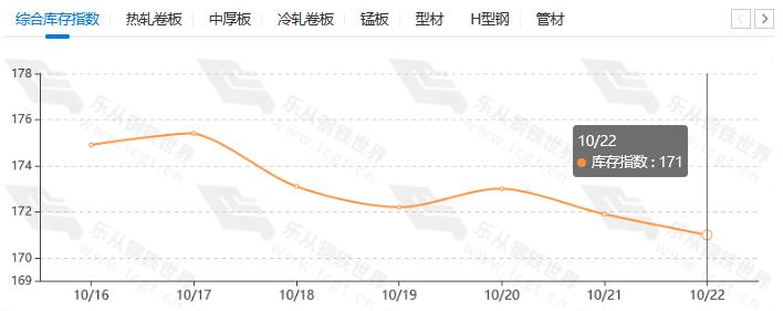 10月22日,樂從綜合庫存指數(shù)錄得171點,較上一交易日跌0.9點,日環(huán)比跌幅0.23%;較上周同期跌1.9點,跌幅1.1%,綜合庫存近7天呈現(xiàn)波動向下趨勢;