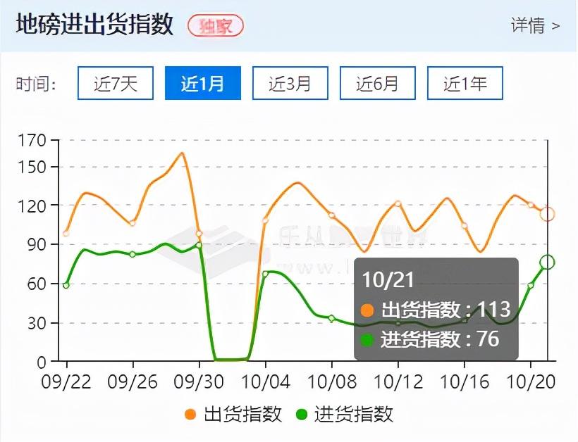 2021-10-22,鋼鐵世界地磅出貨指數(shù)錄得113點,較上一交易日跌7點,跌幅6%;較上周同期升1點,升幅1%。鋼鐵世界地磅進貨指數(shù)錄得76點,較上一交易日升18點,升幅31%;較上月同期跌9點,跌幅11%。