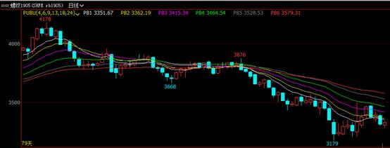 今日線材期貨1905主力合約以窄幅震蕩、橫盤整理運行,盤中最高3458,最低3400,最終收于3451,較昨日結算價格升4,升幅0.12%。