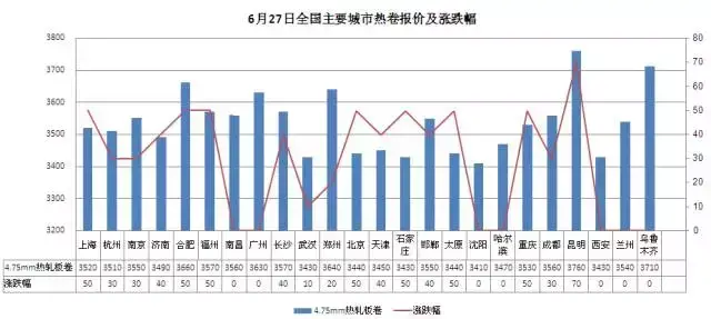 熱軋板卷方面:今日熱卷依舊小幅上漲,昆明、邯鄲漲幅較大,分別為70元和100元。全國24個主要市場4.75 熱軋板卷平均價格3523元/噸,較上個交易日上漲32元/噸。其中4.75mm熱軋板卷上海上調(diào)50元報3420元/噸,北京4.75mm熱軋板卷上調(diào)50元報3440元/噸;長沙上漲40元報3580元/噸;昆明市場上漲70元報3750元/噸。今日國內(nèi)熱卷市場普遍價格上調(diào),但市場出貨一般,對于后市大多商家表示跟著市場走,不敢輕易做出預(yù)期,目前由于鋼市進(jìn)入淡季,下游需求減弱,貿(mào)易商哦著呢缸體表現(xiàn)謹(jǐn)慎,今日價格再次上漲,跟近期期貨震蕩上揚刺激現(xiàn)貨拉漲有關(guān)。所以短期價格或被動小幅趨強。