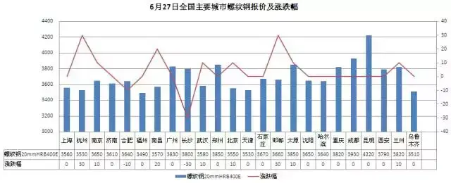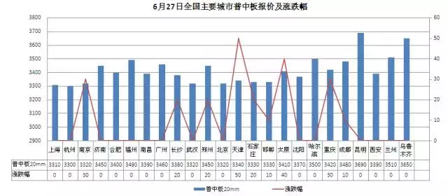 建筑鋼材方面:今日長沙市場下跌30元,其他市場穩(wěn)中小幅上調(diào),主要集中在華東、華北地區(qū)。全國24個主要市場螺紋鋼 20mm HRB400E平均價格3735元/噸,較上個交易日上漲3元/噸。其中上海20mm三級抗震螺紋報價下跌60元至3560元/噸,杭州、南京、南昌上漲10-30元;北京20mm三級抗震螺紋報價上調(diào)10元至3550元/噸,長沙下跌30元報3790元/噸;重慶、貴陽上漲10-30元不等。在期貨帶動下,市場貿(mào)易商也試探性推漲,但是上漲后成交一般,推漲動力不足。據(jù)貿(mào)易商反應(yīng),本周屬于半年度末,資金相對比較緊張,并且仍舊有預(yù)計影響,下游需求難以保障,因此覺得市場上漲動力不足,市場供需處于弱勢平衡態(tài)勢,價格盤整運行。