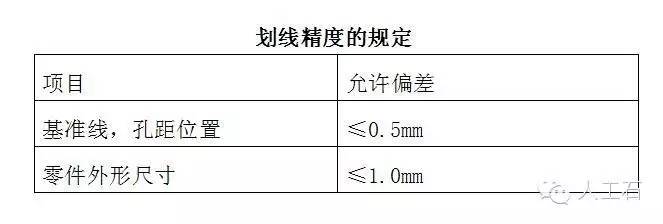 劃線后應標明基準線、中心線和檢驗控制線。作記號時不得使用鑿子一類的工具,少量的樣沖標記其深度不大于0.5mm,鋼板上不得留下任何永久性的劃線痕跡。劃線號料后按質保體系支撐性文件的規(guī)定做好材質標記的移植工作。