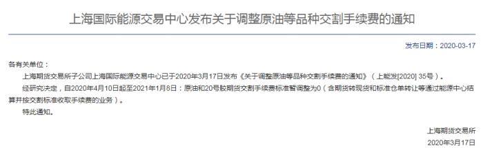 3月17日,上期所及其子公司發(fā)布通知,將所有期貨品種交割手續(xù)費(fèi)標(biāo)準(zhǔn)在規(guī)定期限內(nèi)調(diào)整為0。