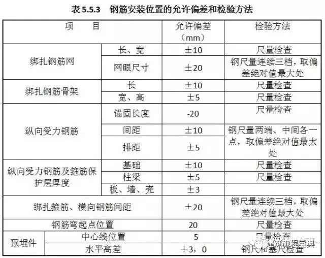 5.5.3 鋼筋安裝位置的偏差應(yīng)符合表5.5.3的規(guī)定,受力鋼筋保護(hù)層厚度的合格點(diǎn)率應(yīng)達(dá)到90%及以上,且不得超過(guò)表中數(shù)值1.5倍的尺寸偏差。