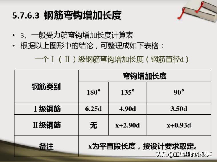 一般受力筋彎鉤增加長度計算表
