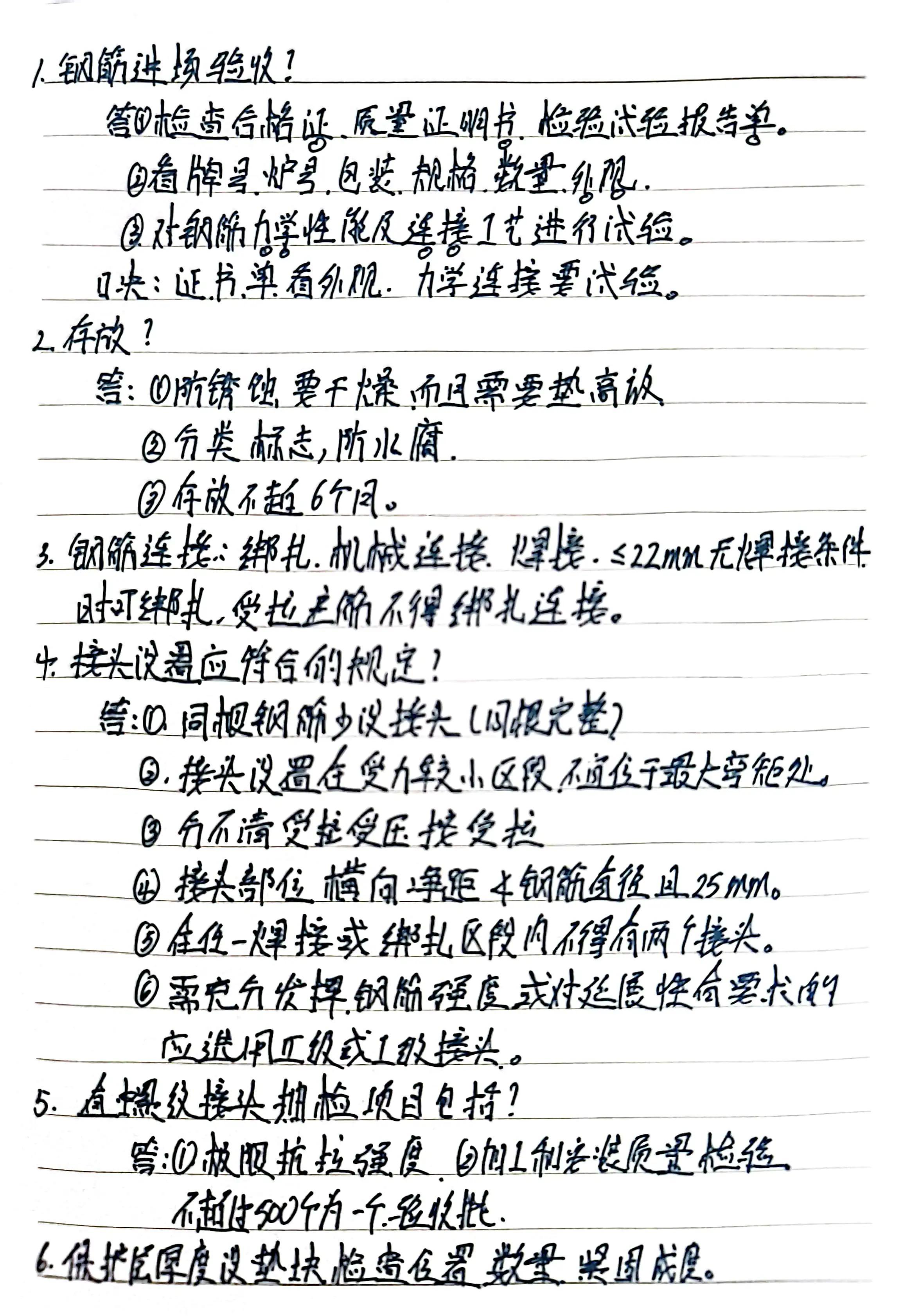 檢查鋼筋的合格證,質(zhì)量證明書(shū),檢驗(yàn)試驗(yàn)報(bào)告單。檢查鋼筋的牌號(hào),爐號(hào),包裝,規(guī)格,數(shù)量,外觀。對(duì)鋼筋的力學(xué)性能及連接工藝進(jìn)行檢驗(yàn)。二、鋼筋存放過(guò)程中需要注意哪些?