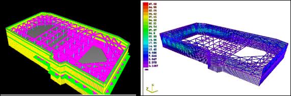 根據(jù)現(xiàn)場檢測數(shù)據(jù)進行三維模擬工況分析(見圖5.2.4)支撐體系在未斷之前的受力情況,確定分段工況下基坑的安全性。