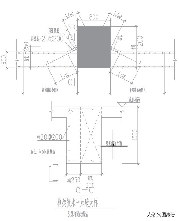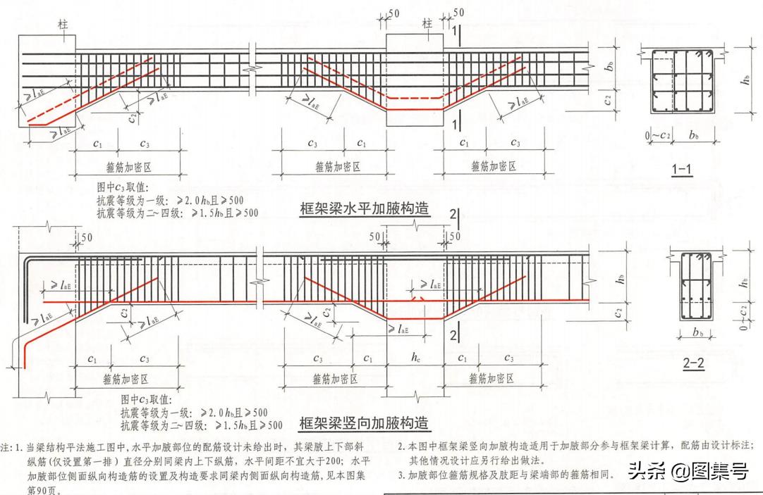 我們根據(jù)16G101參考圖集,可看見梁的加腋施工圖,有兩處不同。