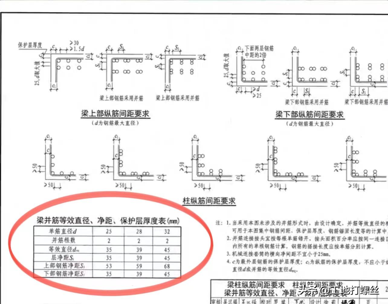 并筋就是把兩根或多根鋼筋并到一起使用,可以增加鋼筋之間的孔隙,方便澆筑混凝土。22 G101圖集要求直徑小于等于28的鋼筋并筋數(shù)量不超過(guò)三根,直徑32的鋼筋并筋數(shù)量宜為兩根,直徑大于等于36的鋼筋不能并筋。