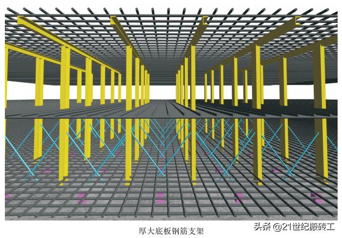 1.厚大底板鋼筋施工前必須編制專(zhuān)項(xiàng)施工方案,需明確鋼筋支架和馬鐙的材質(zhì)、尺寸、制作方式、支撐方式、布置間距以及加固措施。
