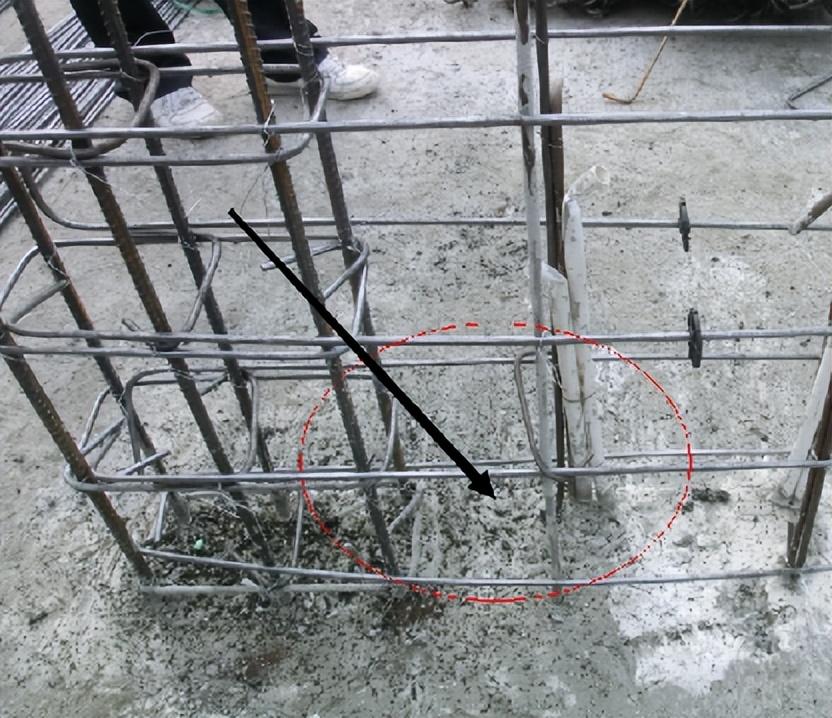 4、梁底箍筋漏綁扎;柱箍筋和主筋未綁扎,這種現(xiàn)象現(xiàn)場(chǎng)實(shí)際施工中經(jīng)常發(fā)現(xiàn)而且還比較多,尤其是梁比較大時(shí)。