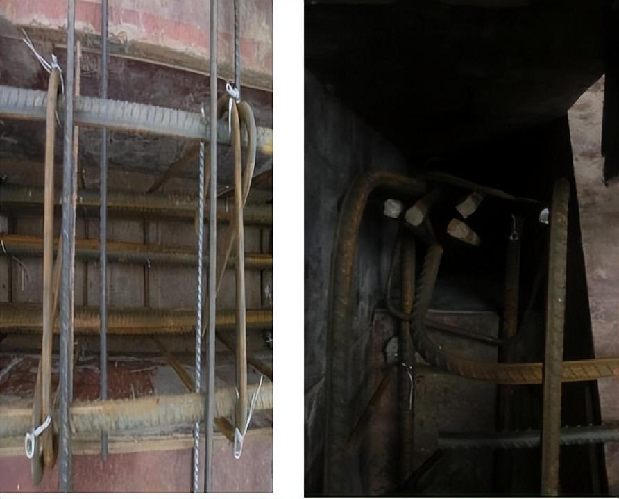 12、鋼筋骨架偏差較大,梁側(cè)由于無側(cè)向限位,導(dǎo)致鋼筋籠偏位;箍筋歪斜,減少梁鋼筋骨架截面尺寸 。