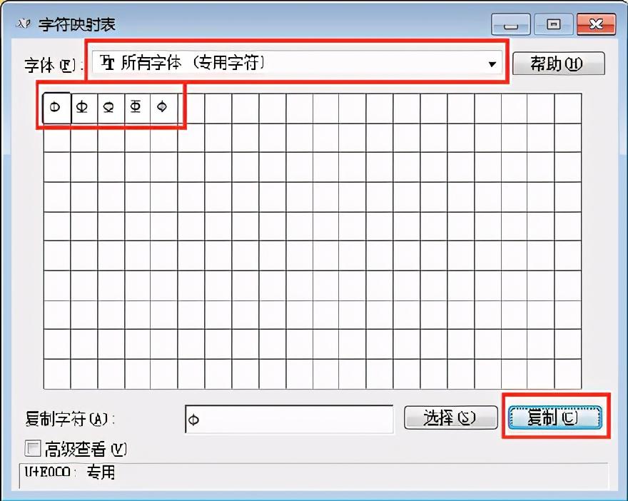 打開電腦的系統(tǒng)——所有程序——附件——系統(tǒng)工具——“字符映射表”,選擇“所有字體(專用字符)或新宋體(專用字符)”,如下圖所示,把表中的專用字符復(fù)制粘貼到涵洞安裝目錄下面的數(shù)據(jù)庫中。