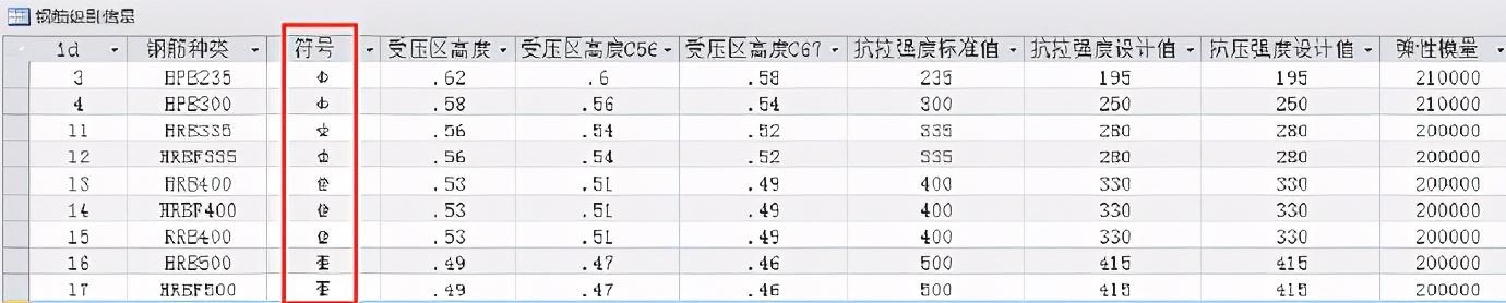 打開C:\Program Files\HintCAD.co\緯地涵洞輔助設(shè)計(jì)系統(tǒng)V2.8\系統(tǒng)設(shè)置,在“涵洞計(jì)算數(shù)據(jù)(中文).mdb”文件中,把各類鋼筋的符號(hào)復(fù)制粘貼到此數(shù)據(jù)庫的“鋼筋級(jí)別信息”中,如下圖所示: