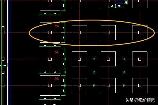 下圖是基礎(chǔ)平面圖中柱基礎(chǔ)(本圖紙稱(chēng)為柱帽ZM*)的分布情況,柱基礎(chǔ)與地下室底板筏板相連接!