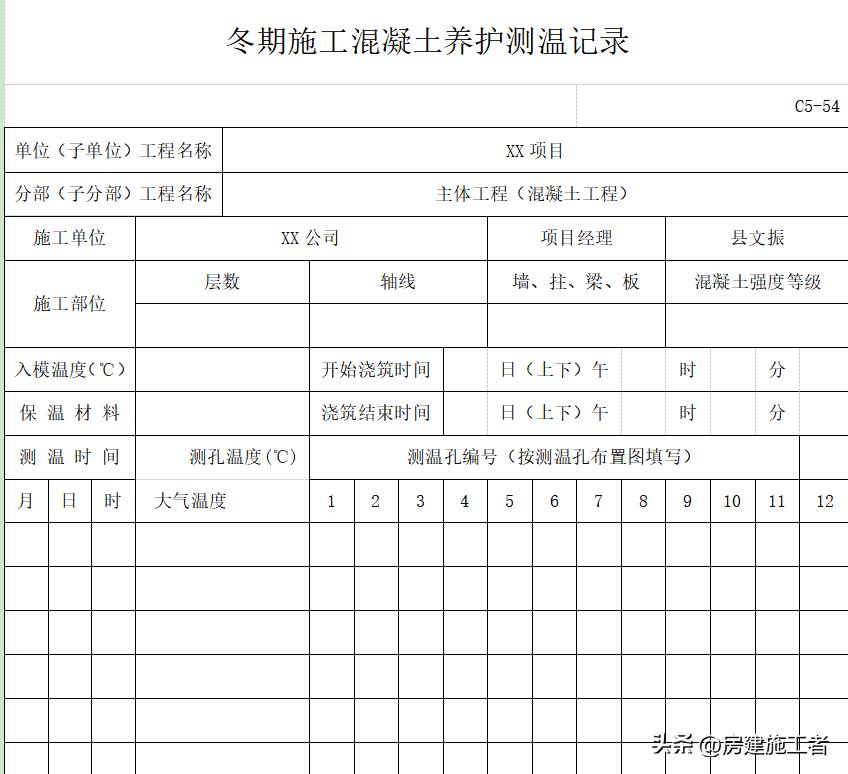 附表:冬期混凝土養(yǎng)護(hù)測(cè)溫記錄