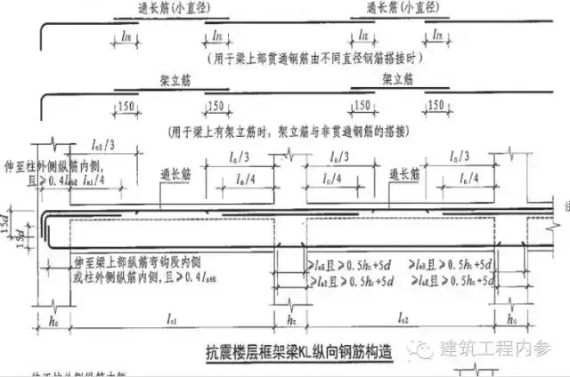 【08G101-11圖集第4.8條(48頁(yè))】規(guī)定:當(dāng)梁的腹板高度≥450mm時(shí),在梁的兩個(gè)側(cè)面沿梁高度范圍內(nèi)配置縱向構(gòu)造鋼筋。