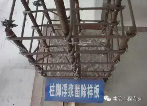 規(guī)范【GBJ134-90第4.2.10條 】規(guī)定:在柱腳施工縫澆筑砼前,應(yīng)將施工縫處砼表面鑿毛,清除雜物,沖洗干凈,保持濕潤(rùn);在施工縫表面宜鋪上一層水泥砂漿,其厚度宜為20 ~ 25mm,灰砂比宜為1:1 。