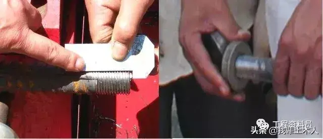 5)連接鋼筋的外露絲扣不應(yīng)大于1個(gè)螺距。接頭必須采用力矩扳手并根據(jù)鋼筋直徑大小調(diào)整力矩扳手所測定的力矩值。當(dāng)用力矩扳手扳動(dòng)直螺紋時(shí)聽到“咔咔”兩聲,則已達(dá)到規(guī)定值,合格;否則視為不合格。