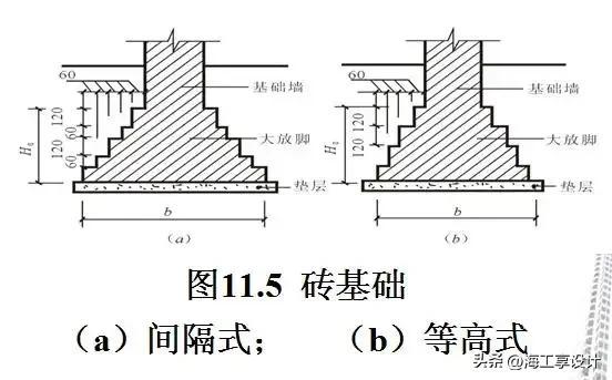 1.無筋條形基礎(chǔ)也叫剛性條形基礎(chǔ),所謂剛性即剛度足夠大,房屋所有荷載通過這個(gè)很大剛度的基礎(chǔ)傳遞給地基。而天然地基的承載力又不高,地基為了承擔(dān)更多荷載,需要一定的面積來分擔(dān)上部荷載,因此就需要基礎(chǔ)砌筑大放腳,其目的就是通過擴(kuò)大基礎(chǔ),把荷載傳遞給地基,這時(shí),承擔(dān)上部的地基面積就會(huì)擴(kuò)大,從而滿足地基承載力的要求。