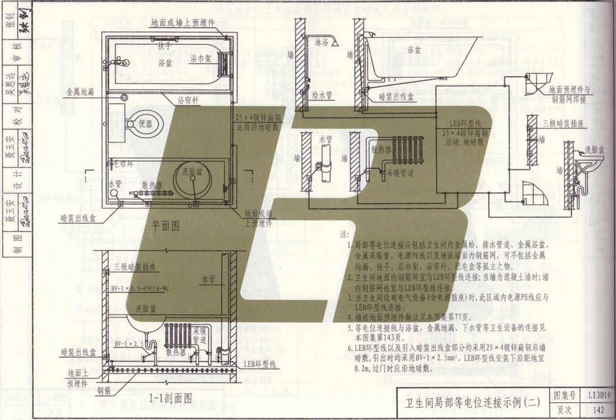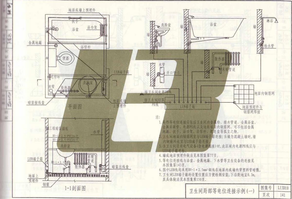 1.2、衛(wèi)生間等電位的做法(LEB),此做法圖集、圖紙標(biāo)注過(guò)于籠統(tǒng)。在日常施工中重視程度不夠,往往忽略結(jié)算算法或者現(xiàn)場(chǎng)做不到規(guī)范。衛(wèi)生間等電位的做法有國(guó)標(biāo)、省標(biāo)兩種,具體施工時(shí)應(yīng)該參照?qǐng)D紙?jiān)O(shè)計(jì)及標(biāo)準(zhǔn)圖集的做法。現(xiàn)主要理清做法的具體操作步驟及注意事項(xiàng)。衛(wèi)生間周圈圈梁鋼筋或者扁鋼焊接完畢引至就近引下線。有的圖紙?jiān)O(shè)計(jì)明規(guī)定定使用衛(wèi)生間內(nèi)鋼筋作為引下線(引下線及其他詳見(jiàn)以下),有的圖紙則不予標(biāo)明。如果需要引至就近引下線的需要考慮焊接并測(cè)量長(zhǎng)度作為計(jì)算依據(jù)。至于衛(wèi)生間內(nèi)上下鋼筋網(wǎng)的連接方式問(wèn)題,在當(dāng)?shù)剡沒(méi)形成一致的看法。但是根據(jù)周邊縣市的實(shí)際做法并參照?qǐng)D集來(lái)看,上下鋼筋網(wǎng)是需要與圈梁連接并形成整體的接地體的。至于如何焊接詳見(jiàn)后面的附圖。衛(wèi)生間等電位還會(huì)涉及衛(wèi)生間內(nèi)照明、插座、金屬構(gòu)件的重復(fù)接地事宜。主要規(guī)定地線剔槽的形制,出線的長(zhǎng)度敷設(shè)方式、八六盒的安裝數(shù)量、無(wú)端子壓線的數(shù)量、接地扁鋼的長(zhǎng)度等。實(shí)際做法如下,使用扁鋼的方法。扁鋼圍繞衛(wèi)生間圈梁一圈,并接入就近引下線柱筋(此處為簽證的要點(diǎn))。在衛(wèi)生間內(nèi)引出500預(yù)留給等電位盒。扁鋼與衛(wèi)生間鋼筋網(wǎng)、圈梁可靠連接。上下鋼筋網(wǎng)按照規(guī)范界定是需要焊接或者綁扎的。也應(yīng)該計(jì)入結(jié)算(此疑點(diǎn)是結(jié)算爭(zhēng)議的焦點(diǎn))。后續(xù)工作為參照?qǐng)D集及圖紙的要求將照明地線、衛(wèi)生間插座地線可靠連接入等電位盒。如果衛(wèi)生間內(nèi)有暖氣片、洗臉盆、淋浴等金屬構(gòu)件需要剔槽、敷管穿線至等電位盒做到可靠接地。切記等電位盒沒(méi)有考慮接線端子,結(jié)算時(shí)需要套用無(wú)端子接線、或者有端子接線。