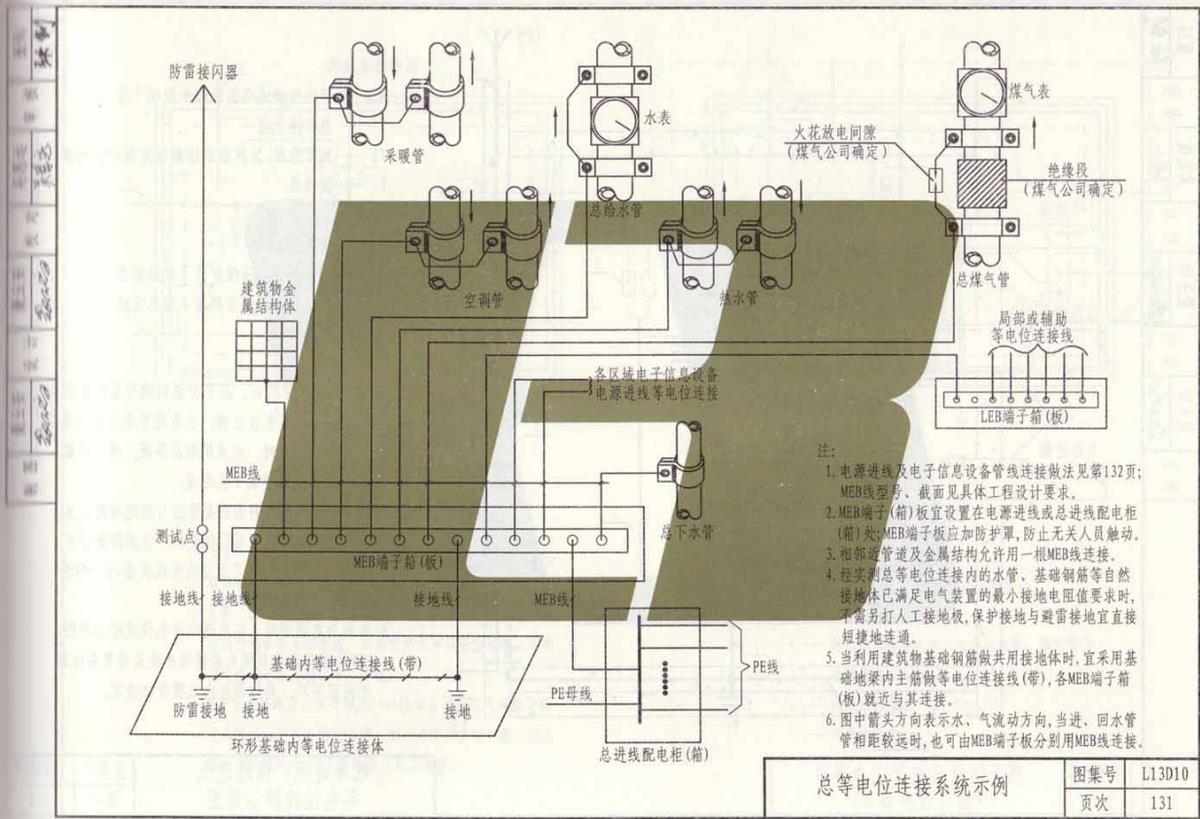 總等電位(MEB)做法,總等電位處涉及到從總箱中引出的接地線的開(kāi)槽、敷管、接地線的壓接端子。欄桿、供熱管道、給排水管道、橋架等的接地跨接。使用單獨(dú)接地線或者扁鋼。一般在圖紙中只會(huì)粗略地提供示意圖。具體施工、結(jié)算時(shí)還要按照?qǐng)D集規(guī)范進(jìn)行計(jì)算。具體如下,總等電位需要連接單元門(mén)口、樓梯欄桿、進(jìn)單元電纜橋架、線管、自來(lái)水、天然氣、暖氣、電箱外殼等金屬構(gòu)件(如何連接詳見(jiàn)圖集)。連接主要用敷管穿BV-25以上雙色線或者40*4扁鋼。如果在前期沒(méi)有敷設(shè)扁鋼可以使用相應(yīng)型號(hào)的線管剔槽敷設(shè)至相應(yīng)位置。工作完畢隱蔽前需要做好記錄作為結(jié)算依據(jù)。