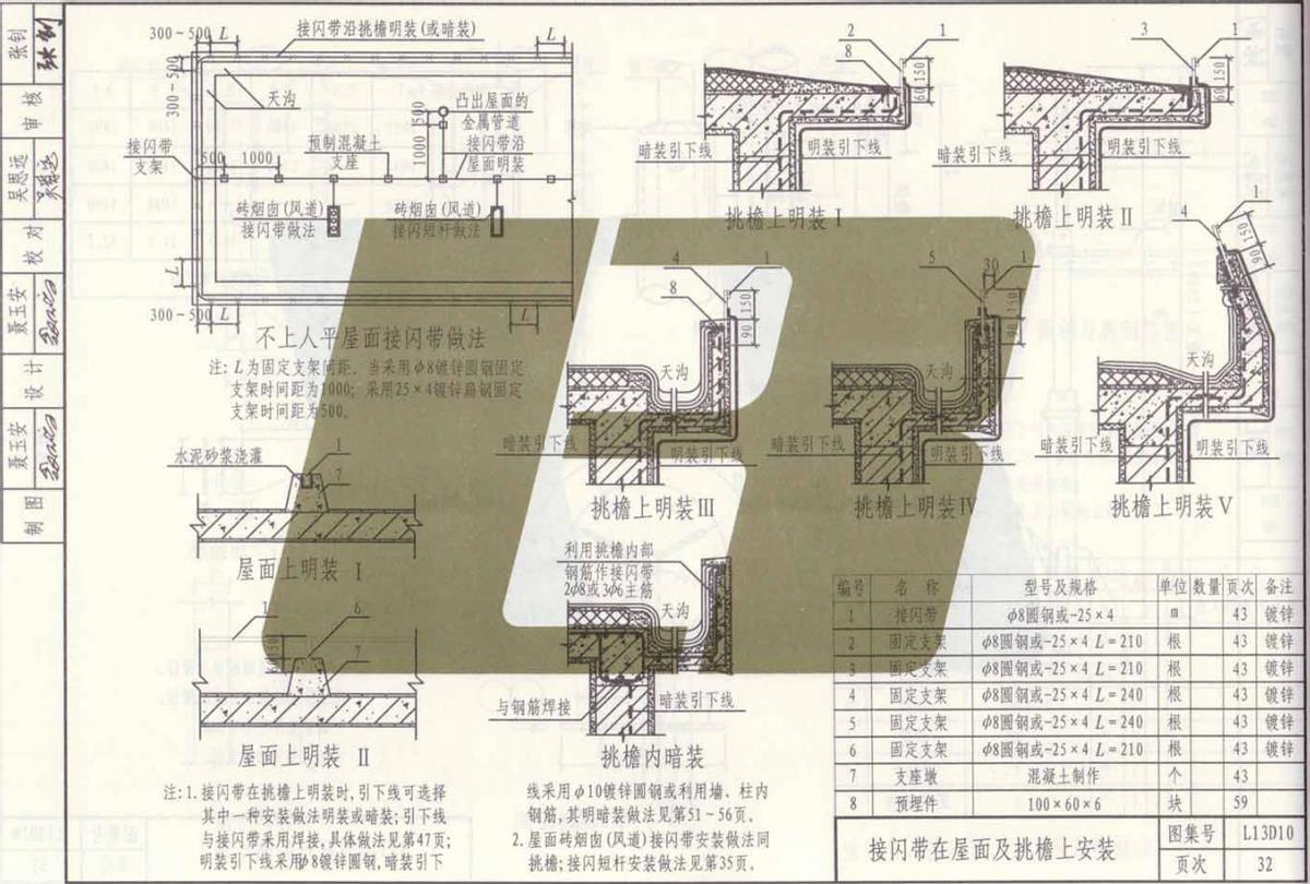 屋面避雷的做法及要點(diǎn)。屋面避雷的工程不僅要參照?qǐng)D紙?jiān)O(shè)計(jì)還要依據(jù)現(xiàn)場(chǎng)為準(zhǔn)。例如避雷網(wǎng)與突出屋面的金屬構(gòu)造物如污水管道、太陽(yáng)能、樓梯欄桿、爬梯等的連接就不在圖紙中。需要依據(jù)實(shí)際情況予以施工!避雷網(wǎng)的圓鋼允許與突出物進(jìn)行焊接及綁扎、卡接。所以在施工時(shí)不一定墨守成規(guī),在規(guī)定允許情況下減少用工。屋面避雷的做法一般有兩種,一種是明裝法,一種是扁鋼暗敷法。明裝管墅主要需要注意一下幾點(diǎn)。屋面欄桿、信號(hào)燈、污水排氣管道、太陽(yáng)能等外露的金屬構(gòu)件或者突出建筑造型處都應(yīng)該與避雷網(wǎng)牢靠焊接。這也是驗(yàn)收時(shí)候提出來(lái)的主要項(xiàng)目。再就是避雷網(wǎng)于建筑物轉(zhuǎn)角處不應(yīng)該直角轉(zhuǎn)彎,這在施工時(shí)候一般都可以避免。但是屋面避雷屬于建筑電氣中比較危險(xiǎn)的工作,所以為減少風(fēng)險(xiǎn)應(yīng)該保證焊接、防腐、粉刷一次到位。切勿出現(xiàn)多次返工或者質(zhì)量問(wèn)題。至于避雷帶安裝詳細(xì)可以參照?qǐng)D集做法。詳見(jiàn)圖集L04D501/L13D502等,基本上避雷接地圖集大同小異。當(dāng)?shù)厥褂玫闹睆?4長(zhǎng)度1.8米的避雷針嚴(yán)格意義只能是接閃器,用于保護(hù)突出的構(gòu)件免受雷擊。避雷針一般建筑中使用較少,基本達(dá)到滾球計(jì)算的要求。雖然只是個(gè)接閃器但是計(jì)算簽證時(shí)候也是不可缺少的項(xiàng)目,現(xiàn)場(chǎng)施工時(shí)候一定要明確標(biāo)注使用位置。