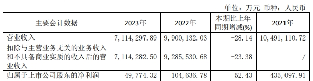 新鋼股份公布2023年年度報告,報告期實(shí)現(xiàn)營業(yè)收入711.43億元,同比下降28.14%;歸屬于上市公司股東的凈利潤4.98億元,同比下降52.43%。擬每10股派發(fā)現(xiàn)金紅利1.50元(含稅)。